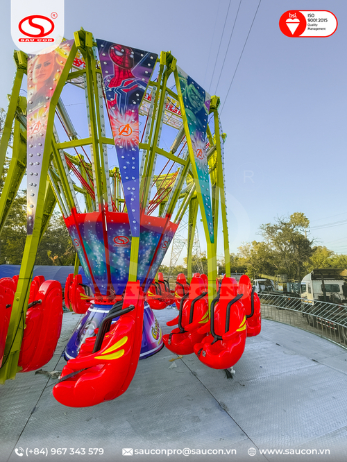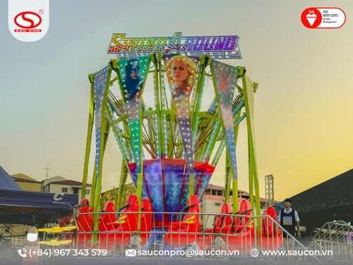 - Thiết kế và tùy biến theo yêu cầu: Khác với việc mua sẵn một dây chuyền nhập khẩu cứng nhắc, Sấu Con sẵn sàng tùy biến màu sắc, hệ thống đèn LED trang trí, và chủ đề của Swing Around để phù hợp với concept tổng thể của công viên khách hàng.
