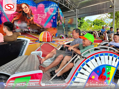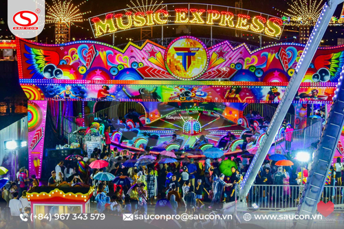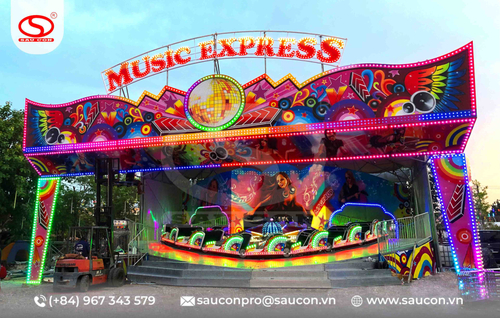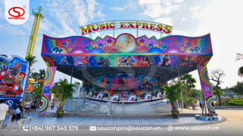 Music Express chính là một trong những lựa chọn tiêu biểu: vận hành như một đoàn tàu lướt trên những con sóng, xoay tròn, đổi chiều liên tục, mang lại trải nghiệm vừa vui nhộn, vừa kịch tính cho người tham gia.