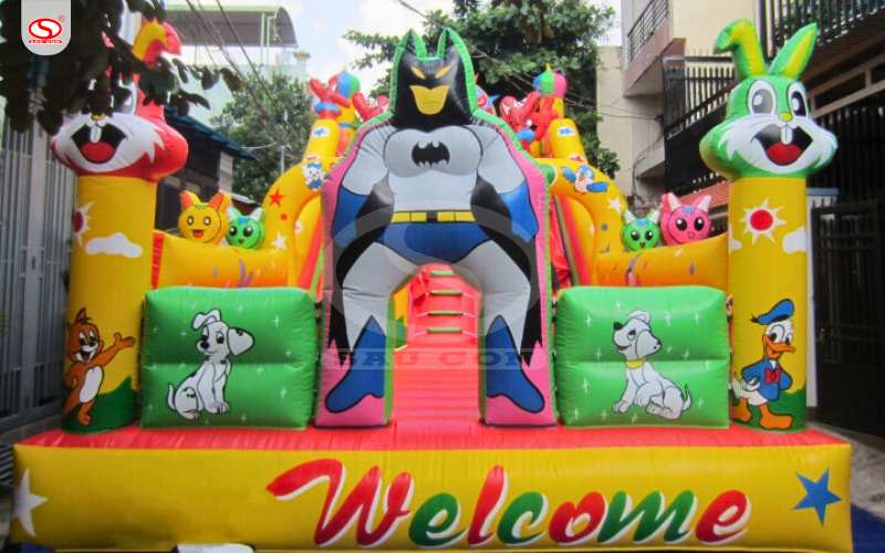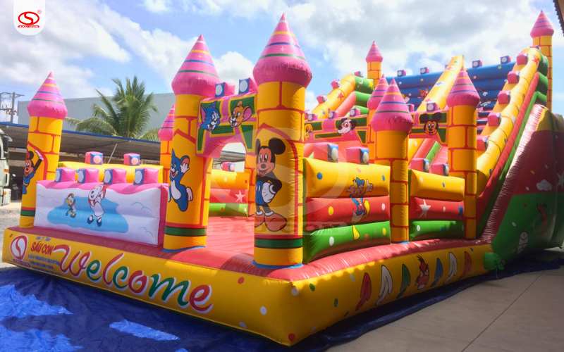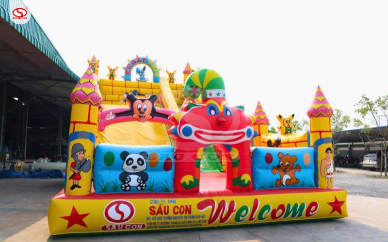 - Khu vui chơi trong nhà: Các trung tâm thương mại thường sử dụng nhà hơi kích thước vừa phải để tối ưu diện tích nhưng vẫn đảm bảo trải nghiệm vận động.
