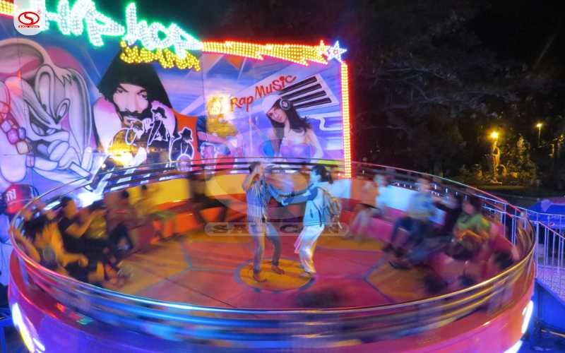 Tại Sấu Con, Tagada không chỉ là một thiết bị cơ khí, mà là một tác phẩm nghệ thuật với hệ thống đèn LED trang trí rực rỡ và kết cấu vững chắc, tạo nên tâm điểm chú ý ngay lập tức.