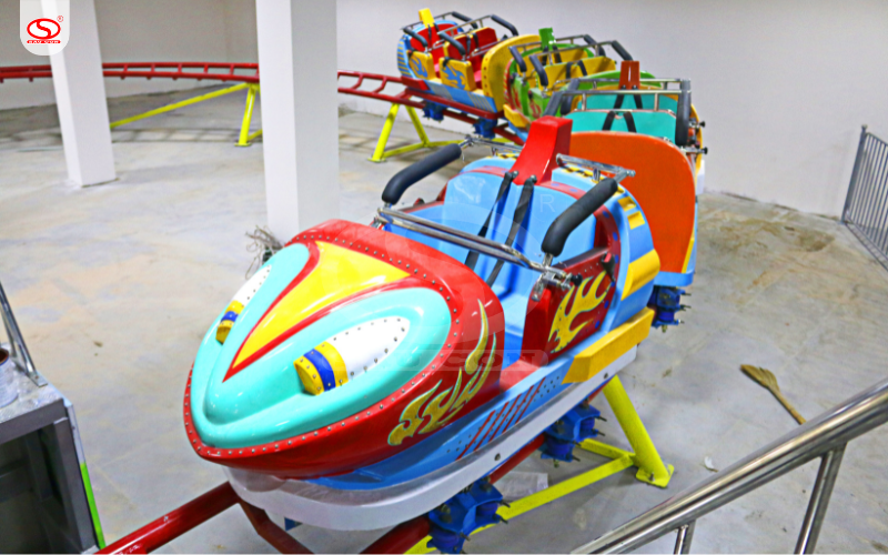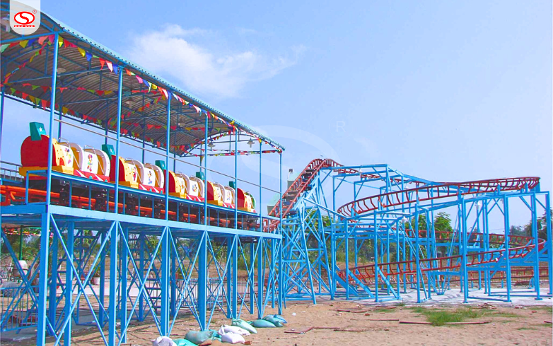 - Tàu lượn trên không 1 vòng xoắn: Phiên bản tiêu chuẩn, phù hợp cho các khu vui chơi quy mô vừa, tối ưu diện tích và chi phí đầu tư, nhưng vẫn đảm bảo trải nghiệm hấp dẫn.