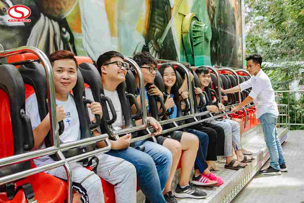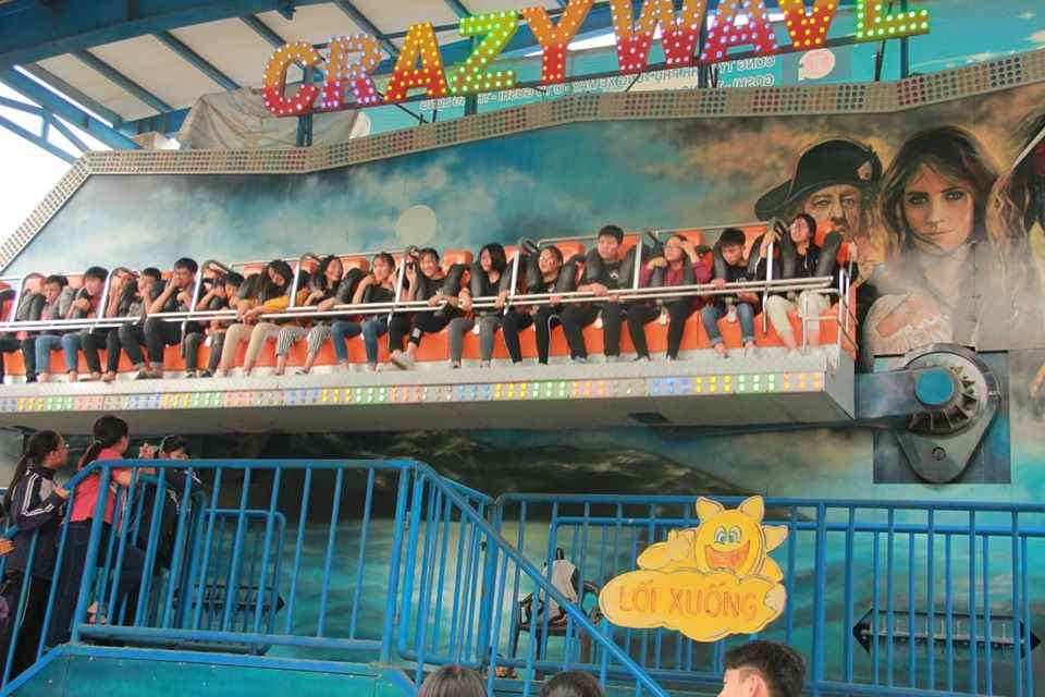 Khu vui chơi cảm giác mạnh trong công viên: Crazy Wave luôn là “trò đinh”, thu hút khách từ xa nhờ backdrop khổ lớn, màu sắc ấn tượng và chuyển động mạnh mẽ.