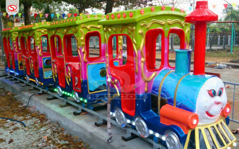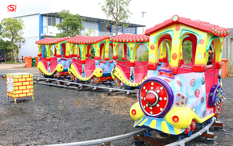 Cơ chế hoạt động: Hệ thống sử dụng đường ray dẫn điện hoặc hệ thống cấp điện an toàn qua đường ray thứ 3/bánh xe tiếp điện. Động cơ DC 48V giúp tàu vận hành êm ái, không gây tiếng ồn lớn và đặc biệt an toàn về điện cho người chơ